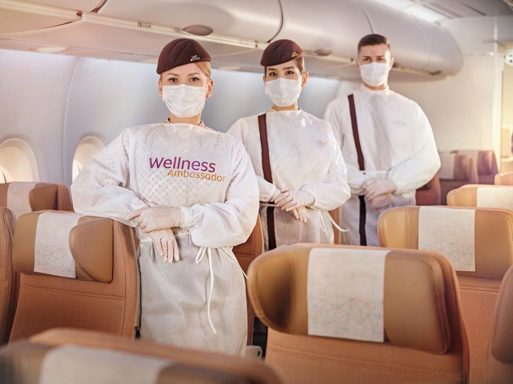 Wellness Ambassador Etihad ha istituito un team di Wellness Ambassador, membri dell’equipaggio e staff aeroportuale appositamente qualificati con il compito di guidare gli ospiti nell’esperienza di viaggio. È possibile contattare i Wellness Ambassador tramite una chat online, attiva 24 ore su 24, che offre continui aggiornamenti sulle ultime direttive internazionali da conoscere prima di mettersi in viaggio. Il team di Wellness Ambassador è a disposizione degli ospiti, sia a bordo che a terra, per offrire loro consigli su come viaggiare in sicurezza, per rispondere a tutte le loro domande e garantire una corretta applicazione delle misure di sicurezza.