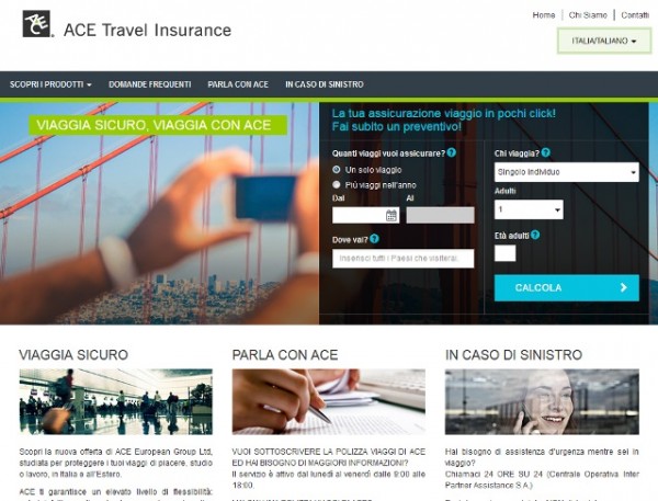 Ace Group lancia la piattaforma per l’acquisto delle polizze di assicurazione viaggi online. Con pochi click, chi viaggia può garantirsi una protezione completa con le polizze viaggio di Ace, direttamente sul sito www.acetravelinsurance.it. I prodotti comprendono i costi relativi all’annullamento, la riprotezione e l’interruzione del viaggio, così come l’assistenza 24h su 24, le spese mediche all’estero e la protezione del bagaglio. La proposta di Ace offre due opzioni: “Viaggio Singolo ”, che copre un viaggio specifico e ben identificato, e “Annuale Multiviaggio ”, con cui si possono assicurare in una sola volta tutti i viaggi che saranno effettuati nel corso dell’annualità assicurativa. In pochi click, su www.acetravelinsurance.it , si può effettuare il preventivo “su misura” in base ai dati del proprio viaggio, per poi completare l’acquisto direttamente online mediante carta di credito. Molteplici i servizi offerti: per qualsiasi dubbio in fase di acquisto sul sito, un servizio clienti dedicato fornirà supporto immediato. Inoltre, per ricevere maggiori informazioni sul prodotto, è a disposizione un form on line alla pagina “Parla con Ace”. Infine, per richieste di assistenza d’urgenza durante il viaggio, Ace sarà al fianco del viaggiatore attraverso la centrale operativa attiva 24 h su 24 .
