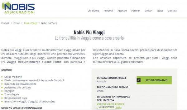Nobis Più Viaggi si rivolge a chi viaggia per vacanza, studio o lavoro, ma anche alle aziende che devono gestire spostamenti frequenti dei propri collaboratori. Al momento dell’attivazione si sceglie l’area geografica di riferimento (Italia, Europa, Mondo o Mondo + Usa e Canada) che resta valida per tutti i viaggi dell’anno in una logica che suggerisce di selezionare la meta più distante se si prevede di farvi almeno una tappa.