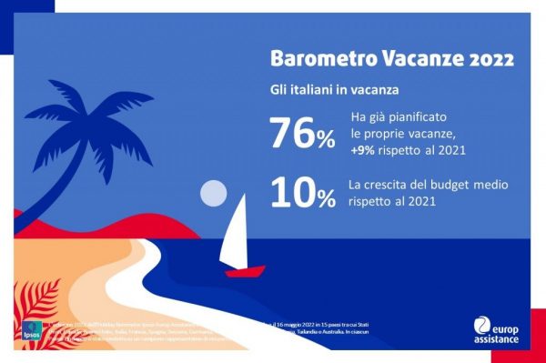 Torna a crescere il trend del turismo in Italia e all’estero: dopo anni di incertezza causati dal Covid-19, si attende infatti una vera e propria ripartenza per recuperare i livelli pre-pandemici. La ventunesima edizione dell’Holiday Barometer del gruppo Europ Assistance ha evidenziato che il 76% (+9 punti percentuale rispetto al 2021) degli italiani intervistati andrà in vacanza questa estate, contro il 71% della media europea, a conferma della grande voglia di tornare a viaggiare. Il 36% del campione, inoltre, ha già prenotato il prossimo viaggio. In generale, il numero degli europei che viaggeranno nell’estate 2022 è più alto rispetto ai livelli pre-pandemici e l’Italia si conferma uno dei Paesi con la crescita più consistente, insieme a Portogallo, Spagna, Polonia e Svizzera.