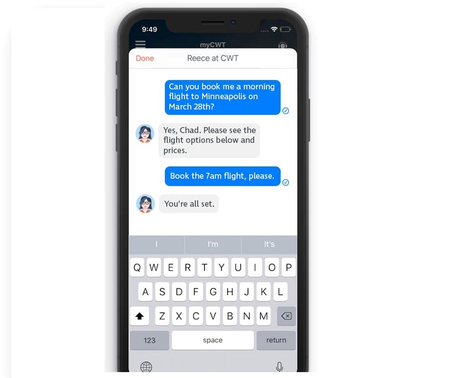 In viaggio, i dipendenti hanno accesso alla messaggistica myCWT sia dall’app omonima, sia sul web. Ulteriori interfacce sono previste nel 2020. I business traveler possono effettuare nuove prenotazioni, apportare modifiche o annullare quelle esistenti, risolvere altre query nonché recuperare e modificare il proprio itinerario.