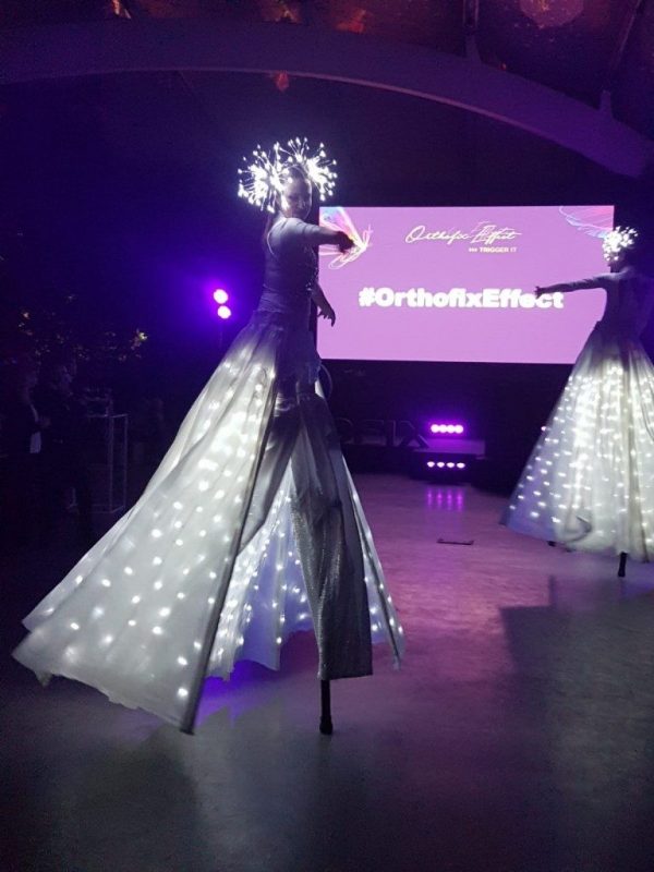 La cena di gala invece è stata realizzata presso lo storico palazzo della Gran Guardia. Molte le performance artistiche. Durante l’aperitivo di benvenuto della cena di gala gli ospiti sono stati accolti dall’esibizione del famoso artista contemporaneo veronese, Serafino Rudari, che ha realizzato per Orthofix una splendida opera su plexiglass. La cena di benvenuto, invece, è stata colorata dall’esibizione delle Farfalle Luminose, momento dal grande impatto visivo ed emozionale.