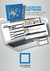 Dalla complessità della gestione dei viaggi di lavoro nasce Click4You, il self booking tool rivolto alle imprese e sviluppato da Gattinoni. Si tratta di un tool multilingue integrato con i gds e con contenuti web relativi a fornitori low cost, ferroviari oltre che con differenti piattaforme per le prenotazioni di hotel.