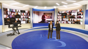 La scenografia virtuale, totalmente in 3D, ha ricreato un vero e proprio studio televisivo. La scena è stata pensata per muoversi liberamente, presentare i contenuti in modo interattivo e ingaggiante. Il giorno dell’evento gli ospiti, una volta collegati, hanno fatto parte di un grande wall: uno schermo, all’interno della scenografia virtuale, composto dai 500 volti dei partecipanti.