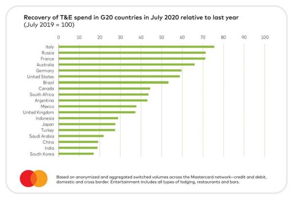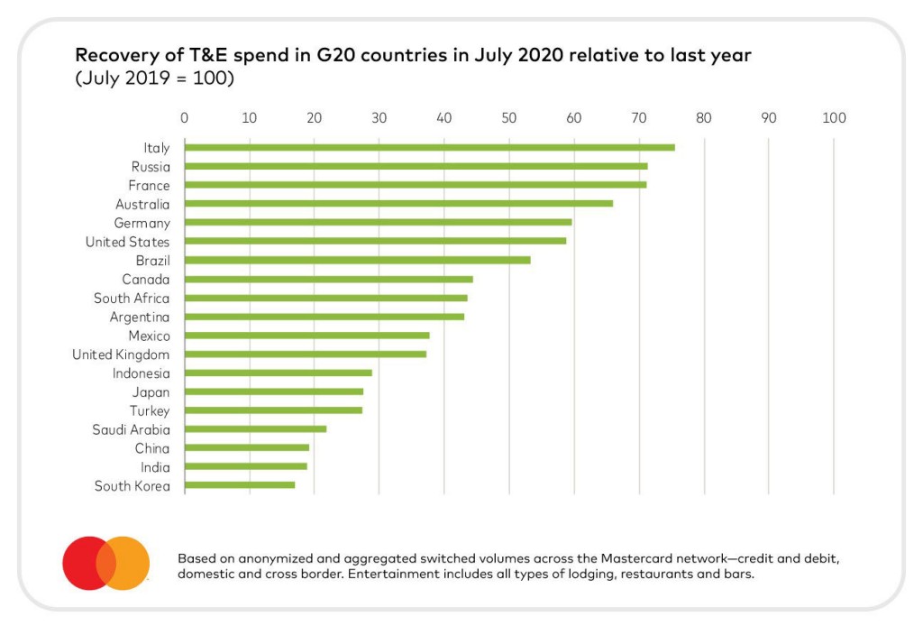 E’ il classico caso del bicchiere mezzo pieno o mezzo vuoto: stando ai dati di un’analisi Mastercard sulle spese dei consumatori, grazie soprattutto a una forte componente domestica della domanda, l’Italia sarebbe il Paese G20 in cui a luglio l’industria dei viaggi e dell’intrattenimento avrebbe registrato il recupero più sensibile. Difficile però dire se la notizia sia positiva o negativa. Da una parte, infatti, il dato evidenzia una certa resilienza del comparto e la mai sopita voglia di viaggiare degli italiani. Dall’altro ci racconta di quanto sia profonda la crisi, dato che persino nel Paese, dove la domanda pare essersi ripresa più velocemente, le imprese del turismo rimangono in gravissime difficoltà.