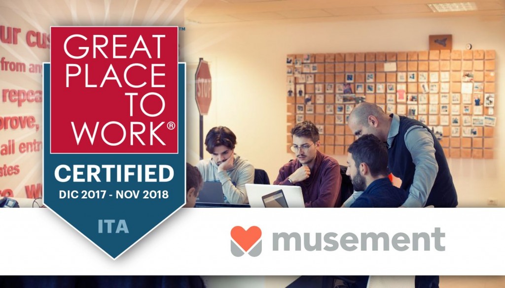 Musement ha ottenuto la certificazione Great Place to Work, accedendo così alle procedure per la definizione della classifica annuale Best Workplaces Italia. «Grazie a questo riconoscimento – commenta una nota dell’azienda – Musement dimostra di avere processi HR di alta qualità, relazioni tra i collaboratori basate sulla fiducia, dipendenti motivati con un alto livello di engagement, orgogliosi dell’azienda e del proprio ambiente professionale, alta attrattività nei confronti del mercato del lavoro e dei migliori talenti, risorse produttive, collaborative e attente all’innovazione».