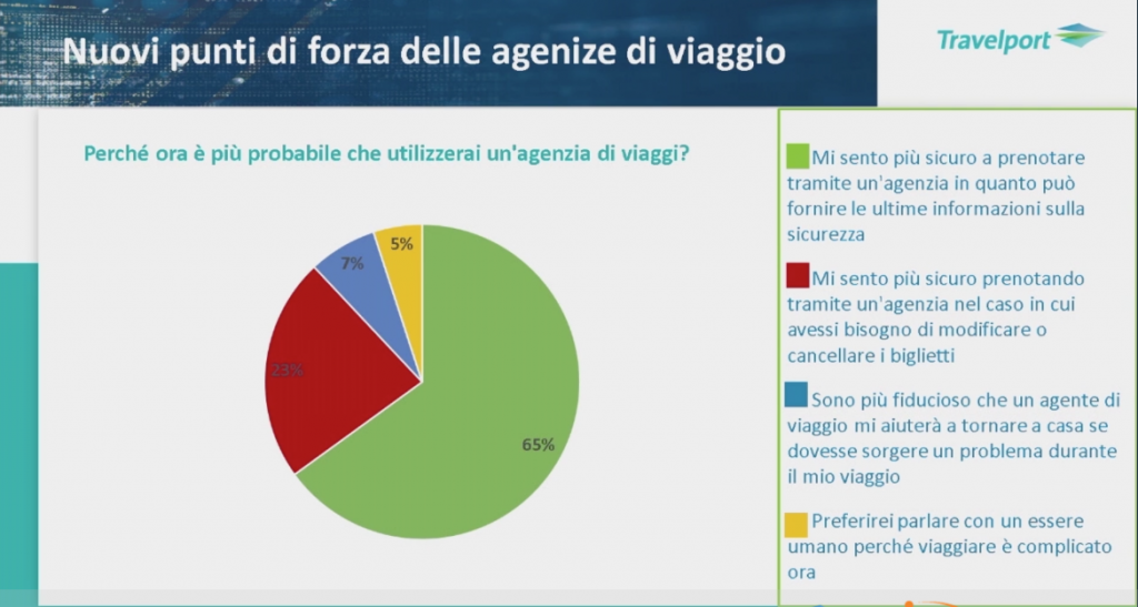 E infatti sempre nella ricerca Travelport, la primo punto della scelta delle agenzie di viaggio da parte dei viaggiatori c’è l’osservazione che il cliente si senti più sicuro a prenotare con un’agenzia in quanto può fornire dati certi sulla sicurezza.