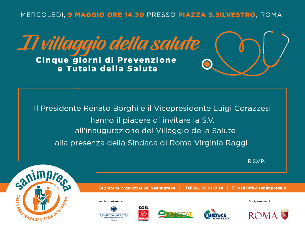 Da domani, 9 maggio alle 14 e fino al 13 maggio sempre alle ore 14, ogni giorno dalle 9,30 alle 18 il Villaggio della Salute di Sanimpresa con la partecipazione de Il Cuore di Roma – Onlus apre i suoi stand in piazza San Silvestro per offrire un percorso di tutela e prevenzione della salute. Sanimpresa, cassa di assistenza sanitaria integrativa che si occupa anche di imprese turistiche, consentirà a tutti – adulti, giovani e anziani – di effettuare, a titolo completamente gratuito, un percorso di controlli sanitari finalizzati ad individuare i fattori di rischio e a correggere abitudini e stili di vita errati. Su una superficie di mille mq all’interno di stand allestiti con garanzia della privacy, i visitatori potranno sottoporsi ad indagini diagnostiche, fare visite o accertamenti e ricevere consulenza medica sulla corretta educazione odontoiatrica o alimentare.