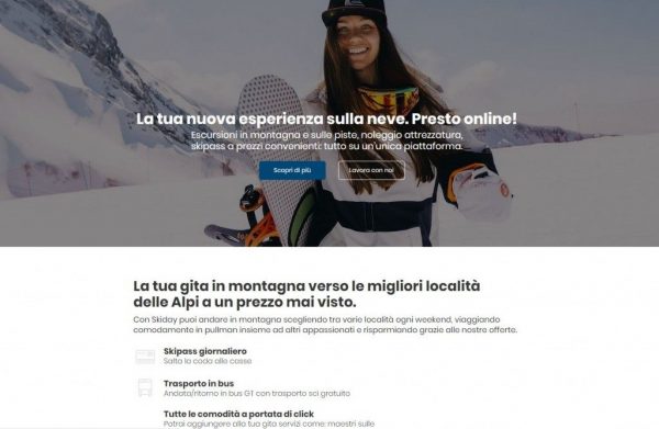La perfetta esperienza sulla neve, combinando semplicemente destinazione, date e tutti i servizi aggiuntivi desiderati. Questa la proposta di Skiday, start up torinese che propone una piattaforma con un’ampia selezione degli impianti sciistici del Nord Italia, con punti di partenza dalle principali città.