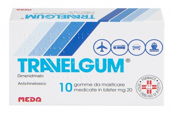 Per molte persone che soffrono di mal di mare, mal d’auto o d’aria mettersi in viaggio può trasformarsi in un vero e proprio incubo: la cinetosi è un disturbo che si manifesta durante gli spostamenti su un qualsiasi mezzo di trasporto (navi, aerei, treni, automobili) ed è causata dall’eccessiva stimolazione delle strutture interne dell’orecchio adibite all’equilibrio. I sintomi sono noti: un generale stato di malessere, sudorazione fredda, nausea e vomito. Alcuni accorgimenti pratici possono limitare i disagi: evitare di mangiare pesante prima di mettersi in viaggio; consumare ogni tanto spuntini secchi; sedersi nel senso di marcia nella parte più stabile del veicolo (in macchina è preferibile il lato passeggero anteriore, posti centrali in navi e aerei); evitare di leggere o guardare lo smartphone: meglio distrarsi guardando il paesaggio davanti ai propri occhi; in ogni caso, guardare sempre in avanti o fissare un oggetto lontano; bere poco, e a piccoli sorsi; in auto, tenere i finestrini leggermente aperti. Talvolta è necessario ricorrere a farmaci a base di dimenidrinato tra cui le gomme da masticare Travelgum con azione antiemetica, cioè in grado di prevenire la nausea ed il vomito. La dose raccomandata per gli adulti è di una gomma da masticare fino al massimo di quattro al giorno; per bambini di età compresa fra 4 e 18 anni: una gomma da masticare medicata sino ad un massimo di due al giorno. Travelgum non deve essere usato nei bambini di età inferiore a 4 anni. È consigliabile iniziare con la dose minima, assumendo il medicinale prima di iniziare un viaggio in auto, per mare, in aereo o in treno e comunque appena si avvertono i primi segni di nausea e malessere. Travelgum si presenta in forma di gomme da masticare medicate bianche, contenute in blister da 10 gomme.