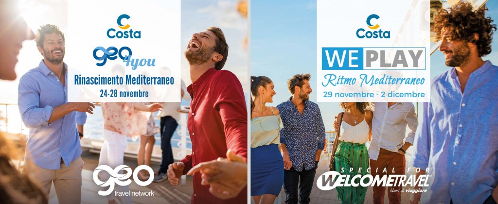Si è infatti appena concluso con successo “Geo4You Rinascimento Mediterraneo” il FamTrip dedicato alle agenzie Geo, che si è svolto a bordo di Costa Firenze dal 24 al 28 novembre. Mentre, parte oggi da Savona “WE PLAY Ritmo Mediterraneo”, a bordo di Costa Pacifica che ospiterà le agenzie Welcome Travel fino al 2 dicembre.