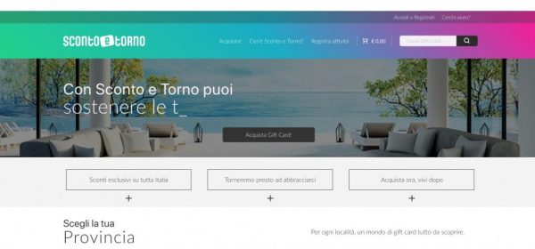 Si tratta di Sconto e Torno un portale online dove il mondo dell’hospitality propone sconti sull’acquisto di buoni digitali di attività della ristorazione e di strutture ricettive piccole, medie e grandi di tutta Italia. Per i clienti un vantaggio immediato, in quanto lo sconto minimo sui servizi è del 10% e si ha tempo 12 mesi per utilizzare il buono, e al contempo una sorta di ‘contributo solidale’, in quanto il ‘pre acquisto’ agevola la ripresa dell’attività delle strutture ricettive e di quelle della ristorazione.