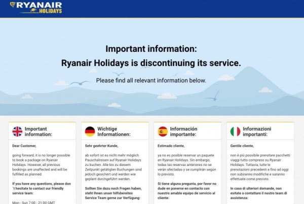 Meno di due anni dopo il suo debutto in Spagna, il sito di pacchetti vacanza Ryanair Holidays ha chiuso l’operatività con il seguente messaggio: «Non è possibile prenotare un pacchetto su Ryanair Holidays. Tuttavia, tutte le precedenti prenotazioni non saranno interessate e saranno soddisfatte come previsto» . Il tentativo di Ryanair Holidays di diventare l’Amazon […]→