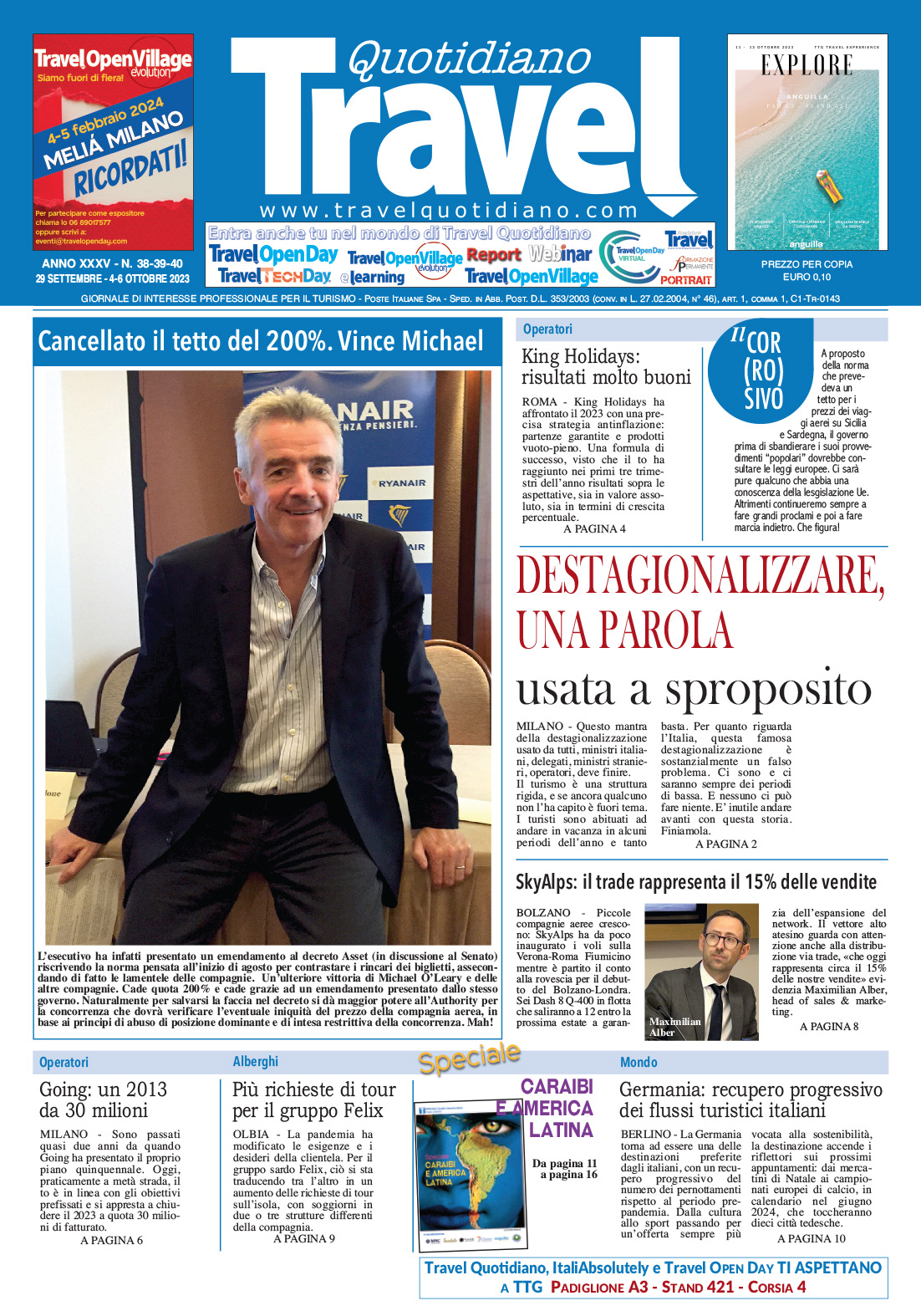 Travel Quotidiano 29 settembre – 4-6 ottobre 2023