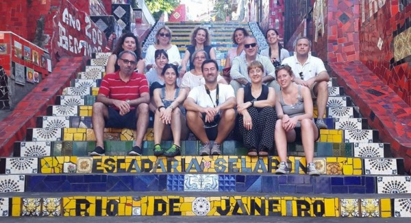 Arrivano da Rio de Janeiro le prime foto degli agenti di viaggio che stanno partecipando al famtrip in Sud America promosso da Alidays Travel Experiences in collaborazione con Latam Airlines Group, un viaggio di dodici giorni alla scoperta di Brasile, Argentina e Cile. I partecipanti stanno vivendo alcune esclusive esperienze tra natura, storia, tradizione e cultura suggerite da Fluidtravel.it, tra cui la passeggiata per immergersi nell’atmosfera di Copacabana; una pedalata nel quartiere carioca di Leme, oltre a una full immersion nel rione di Santa Teresa tra architettura coloniale, colori, musica e ristorantini tipici. A Buenos Aires Fluidtravel.it suggerisce una serata al Piazzolla Tango, il locale dedicato al padre del tango moderno, che riporta alle atmosfere borghesi e raffinate di fine Ottocento quando la capitale dell’Argentina ambiva a divenire la Parigi del Sud America e il suo biglietto da visita era proprio il tango. In Cile, invece, ecco l’esperienza “Al passo dei flamencos” a San Pedro de Atacama, dove si ammira il planare dei fenicotteri sulla laguna Chaxa. Durante l’educational non mancano le visite alle strutture ricettive come ad esempio l’Alto Atacama Desert Lodge & Spa, nella regione di San Pedro, un design hotel totalmente immerso nella natura della Catarpe Valley. Nella foto: gli agenti di viaggio, accompagnati da Clarissa Martini di Alidays Travel Expreriences e da Gregorio De Vecchi di Latam Airlines Group, posano sulla scala di Rio de Janeiro: Chiara Alessandra Martello (Orchidea Viaggi-Milano), Michela Borellini
