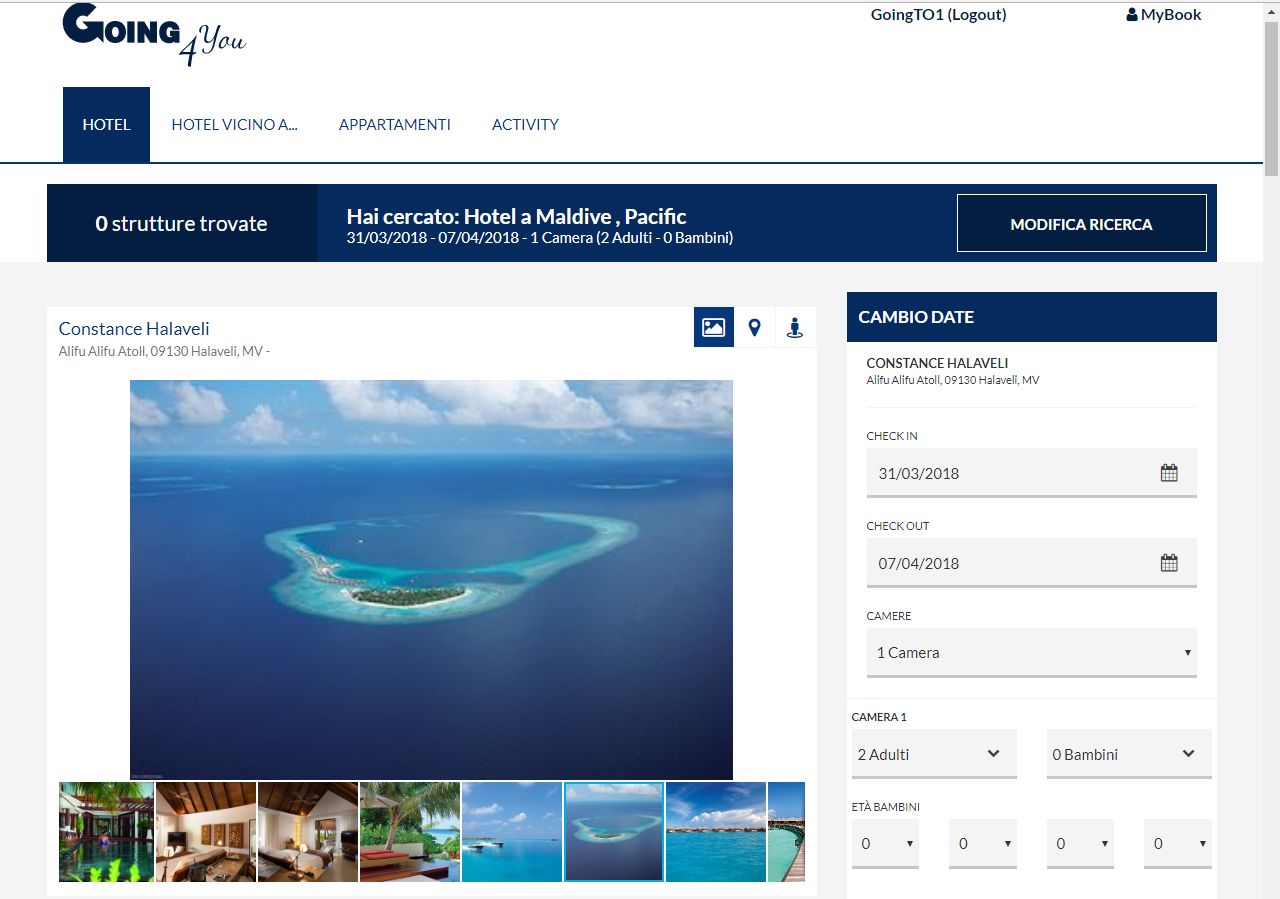 Oltre 1,2 milioni di alberghi e 150 mila attività in tutto il mondo sono disponibili sulla piattaforma B2B Going4You, il nuovo strumento che permette di interrogare 100 fornitori di servizi per offrire alle agenzie di viaggi infinite possibilità di scelta per la creazione dell’itinerario. Il debutto della piattaforma è avvenuto all’inizio di gennaio in maniera graduale per le agenzie del Gruppo Bluvacanze e sarà disponibile per tutte le agenzie contrattualizzate Going nei primi giorni di marzo. «È uno sviluppo tecnologico fondamentale – afferma il brand manager del tour operator, Emmer Guerra – in quanto andiamo ad allargare la fascia di prodotto per le agenzie su vari livelli: disponibilità, prezzo e varietà dell’offerta. Sarà possibile prenotare non solo alberghi ed appartamenti ma anche escursioni, esperienze di viaggio e trasferimenti. È un contenitore di prodotto che permette alle agenzie di avere più possibilità e, allo stesso tempo, sempre il miglior prezzo sul mercato».