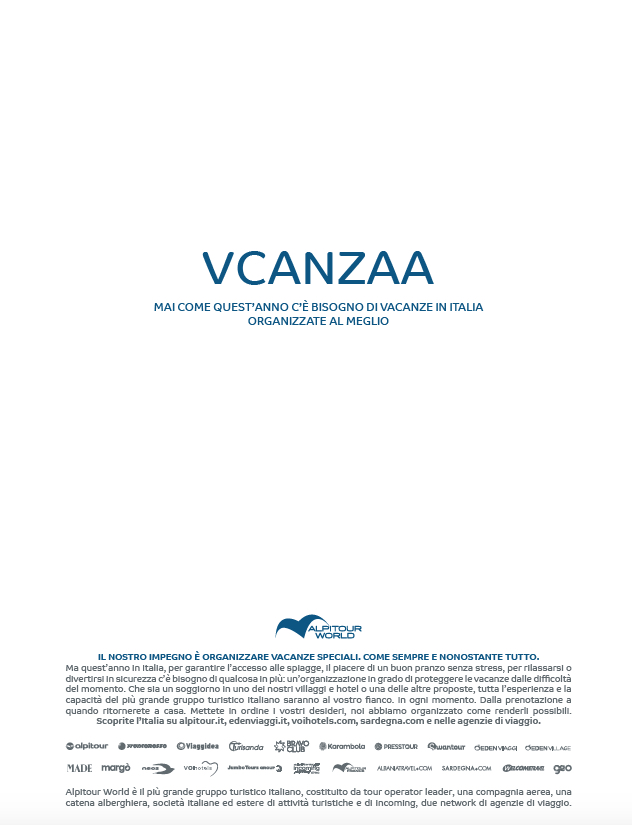 L’estate è alle porte e l’Italia vuole riprendere a viaggiare. È per questo che Alpitour World pianifica una campagna di comunicazione dedicata all’Italia e che dal 31 maggio occuperà le principali pagine dei quotidiani nazionali, oltre a essere declinata sui siti e sui social del Gruppo: l’obiettivo è riprendere il messaggio di vicinanza diffuso a fine aprile, per svilupparne uno nuovo con al centro il valore più importante riscoperto durante l’emergenza, l’organizzazione. Un tratto distintivo che guida l’azienda da 73 anni e che per quest’estate assume un ruolo ancora più rilevante. Proprio da questo concept si sviluppa la campagna di Eggers 2.0, che ha lavorato anche alla prima creatività di aprile. Il copy è semplice e diretto: mai come quest’anno c’è bisogno di vacanze in Italia organizzate al meglio. Una consapevolezza con cui rileggere i soggetti della campagna, anagrammi di parole iconiche legate al mondo dei viaggi: vacanza, relax, spiaggia, divertimento e tavola. Termini facilmente riconoscibili e indissolubilmente legati al turismo che, però, si stagliano sulla pagina con le lettere alla rinfusa, come se fosse passata una folata di vento a scombinare le carte: niente di più affine alla situazione attuale che, in un soffio, ha minato stili di vita e certezze.