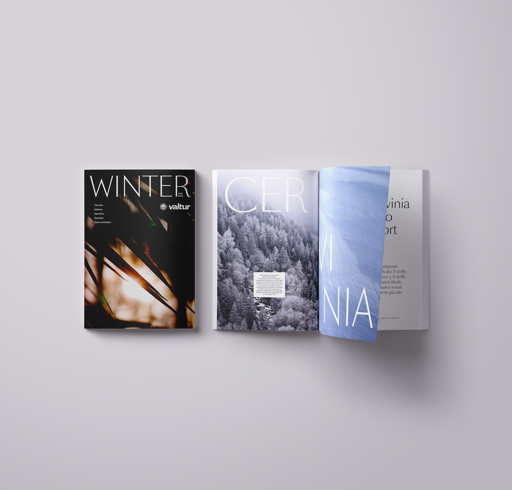 Frutto della visione creativa di Leftloft, studio milanese di design della comunicazione di respiro internazionale, è uscito il nuovo catalogo Winter Valtur in versione sfogliabile online e in arrivo nelle agenzie a inizio novembre, In formato A3, che lo rende simile a un magazine raffinato, il volume è un vero e proprio magalogue, in cui contenuti visivi e testuali si combinano in maniera unica.