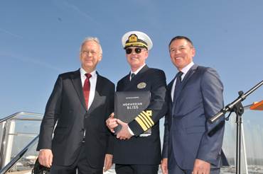 Norwegian Cruise Line ha preso in consegna in Germania dai cantieri Meyer Werft la nuova Norwegian Bliss, che il giorno dopo, il 21 aprile, ha iniziato il suo primo viaggio transatlantico. Il 30 maggio la nave raggiungerà il suo homeport di Seattle, nello Stato di Washington, dove si svolgerà la cerimonia ufficiale di battesimo. Dopo una breve crociera, la nave tornerà in porto il 2 giugno per salpare per la sua prima crociera di sette giorni in Alaska.