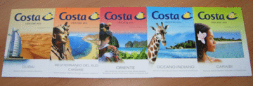 Costa Crociere si prepara alla stagione invernale e presenta i nuovi cataloghi monoprodotto: Mediterraneo del Sud e Canarie, Dubai, Caraibi, Oriente e oceano Indiano, già disponibili presso le agenzie di viaggio. All’interno del catalogo dedicato a Dubai sarà possibile avere tutte le informazioni sulla nuovissima ammiraglia Costa Deliziosa, che esordirà nei primi mesi del 2010 con una crociera inaugurale diretta verso la penisola arabica. Il Medio Oriente sarà anche la meta di Costa Luminosa, mentre Costa Pacifica sarà protagonista del nuovo itinerario "Ritorno in Terra Santa". Un’altra novità è l’introduzione, nei cataloghi monoprodotto dedicati a Dubai, Caraibi, Oriente e oceano Indiano, di una doppia tabella dei prezzi: per consentire ai clienti una maggiore personalizzazione del proprio viaggio è infatti possibile scegliere tra il pacchetto “volo+crociera” oppure la tariffa “solo volo”. Da quest’anno i clienti potranno beneficiare di riduzioni straordinarie sul costo della cabina su tantissimi itinerari volo+crociera in catalogo.