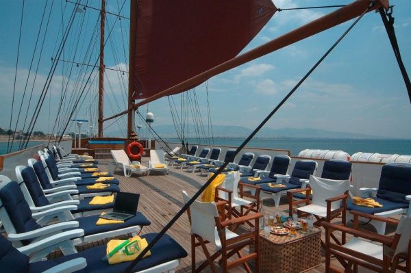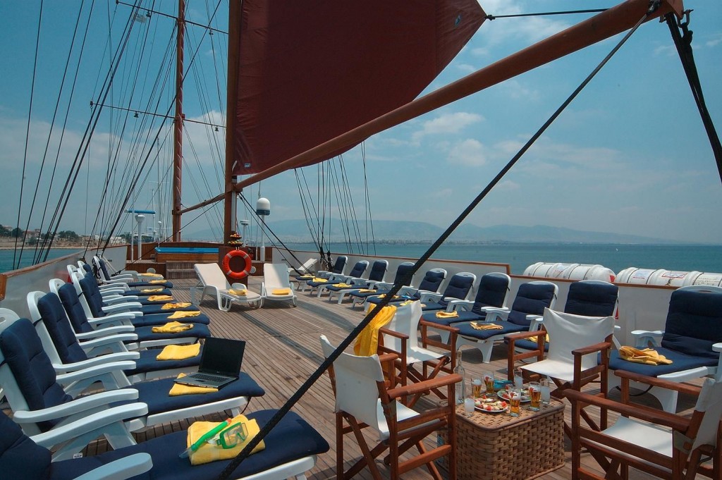 Le tre navi protagoniste degli itinerari greci sono Harmony G, uno yacht elegante con 21 cabine, che può trasportare 44 ospiti; Harmony Voyager, lo yacht gemello da 25 cabine per 49 ospiti; Galileo, un veliero a motore tradizionale da 24 cabine per 49 ospiti. Su tutte le navi.