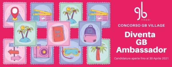 Gb Viaggi lancia una campagna di recruitment per selezionare i primi Gb Ambassador che avranno il compito di raccontare la vita all’interno dei villaggi del to attraverso fotografie, vlog, blog e social media. In palio, soggiorni di sette notti in sei differenti destinazioni Gb Viaggi. Durante lo stesso soggiorno, i vincitori avranno poi anche la possibilità di partecipare a contest tra Gb Ambassador, sfidando gli altri vincitori in un duello a colpi di like per ottenere ulteriori sostanziosi premi in denaro.