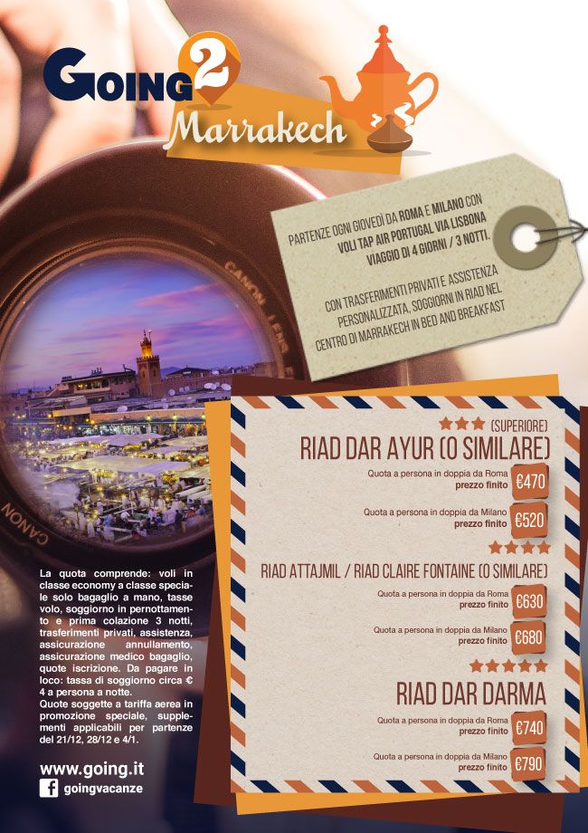 Sono Varadero, Marrakech e Miami le new entry della programmazione di Going2. Dopo il successo del debutto, grazie al lancio di Parigi e Hong Kong, Going ha deciso di ampliare le proposte introducendo Marocco, Cuba e Florida. Le possibilità di pernottamento sono diverse e variano dai Riad della città marocchina, agli hotel che si affacciano sulle spiagge della località cubana o sulla metropoli americana. Non cambia la formula: la linea di prodotto Going2 prevede un pacchetto volo+hotel a partire da 3 notti rivolto a chi ha intenzione di scoprire le destinazioni in maniera flessibile con un’attenzione particolare al rapporto qualità/prezzo. «L’aumento della programmazione di Going2 – spiega il brand manager Going, Emmer Guerra – va nella direzione di offrire maggiore prodotto a conferma immediata con prezzo finito per le agenzie, proponendo una soluzione flessibile ed in grado di adattarsi alle diverse esigenze dei viaggiatori». Si proseguirà con investimenti mirati all’ampliamento della programmazione con tour e proposte più strutturate: «Abbiamo ancora una lunga strada da percorrere – analizza Guerra – ma siamo soddisfatti dell’ottimo riscontro ottenuto con il lancio di Going2 che, soprattutto per il segmento Millennials, si sta rivelando un prodotto molto competitivo in termini di pricing e di destinazioni programmate».