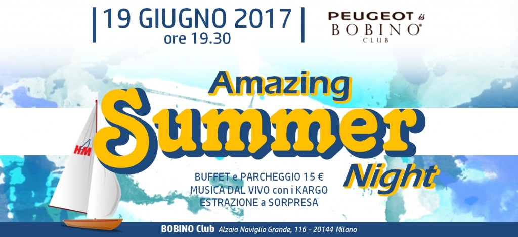 Horca Myseria organizza per questa sera l’Amazing Summer Night, una serata speciale con musica dal vivo, buffet e tanto divertimento. La location è Bobino Club, Alzaia Naviglio Grande 116, in esclusiva per l’evento. Dalle 19,30 sarà servito il buffet con prima consumazione (15 euro a persona, parcheggio interno compreso per le prime 120 auto); seconda consumazione 10 euro. A seguire estrazione buoni viaggio Horca Myseria. Ore 22: concerto dal vivo dei Kargo.