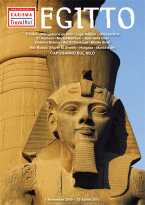 Karisma Travelnet presenta il catalogo monografico di 20 pagine dedicato all’Egitto, valido fino al 30 aprile, che oltre al turismo balneare e alle crociere sul Nilo mette in risalto anche alcune delle aree poco note al mercato italiano, quali la costa mediterranea e le oasi. L’offerta, basata sui voli Egyptair dall’Italia, permette un’ampia scelta per poter costruire una vacanza su misura. Ad esempio, dopo un soggiorno di 4 giorni/3notti a Il Cairo, è possibile prenotare diverse estensioni: la crociera sul Nilo, che consente a sua volta di effettuare una minicrociera sul lago Nasser da Aswan; un circuito di 5 giorni/4 notti tra Alessandria, Marsa Matrouh ed El Alamein; oasi e deserto Bianco; Santa Caterina e monte Sinai con Sharm El Sheikh; soggiorni balneari a Sharm El Sheikh, Ain El Soukhna, Marsa Alam e Hurghada. Da segnalare il Capodanno sul Nilo, una crociera programmata dal 29 dicembre al 5 gennaio.