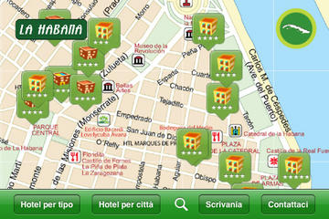 E’ nata la prima applicazione mobile interamente dedicata a Cuba disponibile su iTunes e presentata da Lovelycuba. L’applicazione offre all’user carte stradali dettaglite dell’isola, cartine specifiche de L’Avana e di Varadero consultabili off line, informazioni disponibili in italiano, spagnolo e inglese, descrizioni dettagliate di 170 alberghi, con immagini e video, georeferenziati e distiniti nelle categorie "lusso, città coloniali, nella natura e resort in spiaggia". L’applicazione consente la prenotazione via sms ed e-mail di hotel che sorgono lungo itinerari costruiti sulla cartina geografica.
