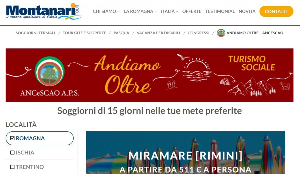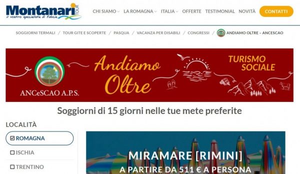 Semplicità di utilizzo, contatto diretto con il turista, snellimento delle procedure, flessibilità dei prodotti, sicurezza della contrattualistica e certezza fiscale. Sono le caratteristiche principali del nuovo portale Andiamo oltre, appena lanciato da Montanari Tour, in collaborazione con l’Associazione nazionale centri sociali, Comitati anziani e orti (AnceScao): uno strumento informatico che vuole proporsi come nuovo modello di promocommecializzazione del prodotto turistico nel segmento silver tourism a livello nazionale. I primi a poter usufruire di questa novità saranno dunque gli stessi iscritti ad AnceScao (350 mila, in 1.500 centri sociali totali), i quali avranno a disposizione un portale esclusivo contenente prodotti per il turista senior, con tariffe di gruppo anche per i viaggiatori individuali.