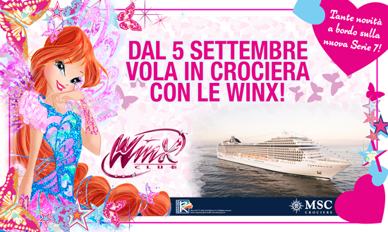 Msc Crociere e Rainbow presentano la sesta edizione della crociera delle Winx: “Winx Fairy Cruise”, interamente dedicata alla nuova serie 7 di Winx Club, in cui le sei fatine Bloom, Stella, Tecna, Flora, Musa e Aisha si impegneranno nella missione di sensibilizzare sia gli abitanti della terra che della dimensione magica sull’importanza della salvaguardia delle specie animali in via di estinzione e del rispetto di tutti gli animali. Dopo il successo delle prime cinque edizioni, la partnership tra queste due realtà operanti nel mercato del tempo libero e dell’intrattenimento continua anche per la seconda parte del 2015 con una crociera che salperà il prossimo 5 settembre dal porto di Venezia a bordo di Msc Poesia, toccando alcune delle località più affascinanti del Mediterraneo orientale. Lorena Vaccari, marketing director di Rainbow dichiara: «Siamo orgogliosi di continuare la partnership con Msc Crociere che, ancora una volta, darà la possibilità di rivivere la magia di Winx Club, in un contesto ideale per il target famiglia e così emozionante come la crociera». La crociera delle Winx partità dalla città lagunare. Tappa successiva, Bari, e poi rotta verso Olympia, Izmir e Istanbul. Ultima città prima del rientro in Italia, Dubrovnik. «La Crociera delle Winx è un grande successo che replichiamo da anni e dedichiamo ai nostri piccoli amici – spiega Andrea Guanci, direttore marketing Italia di Msc Crociere -. Dalle crociere a tema alle aree gioco e ai menù ad hoc per tutte le età, sino alle partnership importanti nel mondo dei bambini e dei ragazzi verso i quali Msc Crociere è particolarmente orientata in questi ultimi anni. Il nostro impegno è di percepire le esigenze del piccolo pubblico e delle rispettive famiglie proponendo iniziative e attività realizzate su misura»