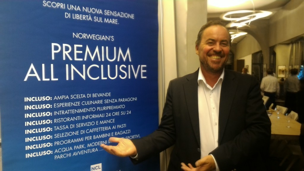 Dopo essere stata lanciata un anno fa in Germania, la formula Premium All Inclusive di Norwegian Cruise Line arriva anche sul mercato italiano: significa che la quota comprenderà un’ampia scelta di bevande alcoliche (dai 21 anni d’età) e analcoliche, una selezione di caffetteria ai pasti, tasse di servizio e mance, oltre – come sempre – all’intrattenimento e ai vari ristoranti di bordo (esclusi quelli di specialità, che continuano a prevedere un supplemento, ma offriranno bevande gratuite). Questa è la grande novità che la compagnia crocieristica americana applicherà da oggi alle prenotazioni e che illustrerà in questi giorni alle agenzie di viaggio durante il Ttg di Rimini. Ad anticiparla alla stampa è stato ieri Christian Böll (nella foto), direttore Europa di Norwegian Cruise Line, che ha quantificato in 1.400 dollari a cabina il risparmio che l’all inclusive consentirà ai passeggeri. «Anche questa innovazione rientra nel concetto di libertà e flessibilità che fin dalle origini caratterizza le nostre crociere e che si applica agli orari dei pasti, alla scelta dei ristoranti, all’abbigliamento di bordo: gli ospiti possono organizzare come meglio credono la propria vacanza, e da oggi non dovranno preoccuparsi più neanche degli extra». Si potranno ordinare al bar e nei ristoranti, in qualunque momento, vini al bicchiere (fino a un costo massimo di 15 dollari ciascuno) e si avrà a disposizione in cabina una bottiglia d’acqua a persona al giorno. I clienti che hanno scelto di alloggiare nell’area The Haven by Norwegian e nelle Suites (le categorie di cabina che iniziano con le lettere H e S) ricevono anche un pacchetto che comprende un numero di cene nei seguenti ristoranti: Cagney’s Steakhouse, Teppanyaki, Le Bistro, La Cucina, Margaritaville e Moderno Churrascaria.