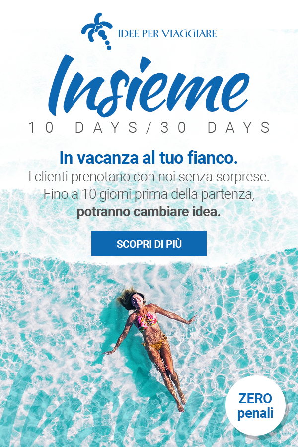 Una nuova opzione di annullamento del viaggio, per qualsiasi motivo e senza penali, a dieci o a 30 giorni dalla partenza, valida per tutte le prenotazioni effettuate entro il 31 marzo e per partenze entro il 31 ottobre. Idee per Viaggiare lancia la nuova policy di cancellazione Insieme 10 Days e 30 Days, pensata appositamente per dare un aiuto concreto al mercato (la policy applicabile sarà comunicata di volta in volta dal booking in fase di preventivo, in base agli accordi preferenziali contrattualizzati con i fornitori dei servizi prenotati).