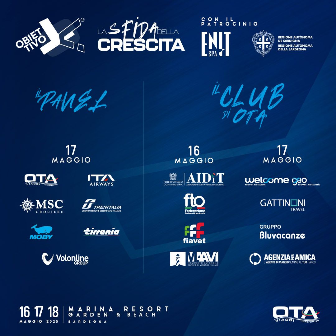Continuiamo con le dichiarazioni su Obiettivo X di Ota Viaggi.Obiettivo X 2025. lLevento annuale organizzato da Ota Viaggi, si conferma anche quest’anno come un punto di riferimento per il settore turistico italiano. In programma dal 16 al 18 maggio presso il Marina Resort Garden & Beach in Sardegna, l’evento vedrà la partecipazione di oltre 280 agenzie di viaggio iscritte e numerosi ospiti.