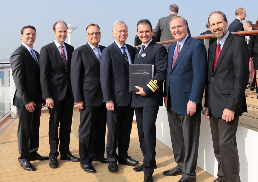 Royal Caribbean International ha ufficialmente preso in consegna Anthem of the Seas. Durante la firma ufficiale che ha avuto luogo a Bremerhaven, in Germania, Bernard Meyer, managing partner del cantiere Meyer Werft, ha consegnato a Richard D. Fain, presidente e ceo di Royal Caribbean Cruises Ltd., Anthem of the Seas, la 23^ nave della flotta. «E’ con gioia ed emozione che ricevo Anthem of the Seas dai cantieri Meyer Werft – ha affermato Richard D. Fain -. Tutte le navi della nostra flotta testimoniano la nostra capacità di rompere con la tradizione e Anthem of the Sea non fa eccezione». Anthem of the Seas si dirigerà ora verso Southampton, Regno Unito, da dove partiranno le crociere verso il Mediterraneo e le Isole Canarie per tutto il mese di ottobre. L’inaugurazione ufficiale è programmata per il 20 aprile a Southampton. In novembre, Anthem of the Seas getterà l’ancora nel porto di New York e proprio da Cape Liberty Cruise Port salperà regolarmente verso incredibili avventure nelle Bermuda, nei Caraibi, in Canada e nel New England. «E’ un vero piacere dare il benvenuto ad Anthem of the Seas nella famiglia di Royal Caribbean” – ha aggiunto Michael Bayley, presidente e ceo di Royal Caribbean International -Proprio come tutte le altre navi della flotta Royal Caribbean, Anthem of the Seas offrirà ai propri ospiti avventure particolari e mozzafiato, nel Mediterraneo così come nei Caraibi».