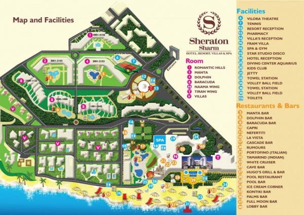 La mappa dello Sheraton con la sezione “Villas” in basso a sinistra
