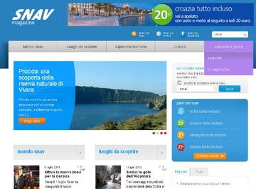 Snav lancia il nuovo magazine online, Magazine.snav.it per informare i lettori sulle attrattive dei luoghi prescelti per la vacanza. Cinque canali tematici, ognuno con una sezione dedicata contenente ulteriori sottocanali, conducono il lettore attraverso riserve naturali, parchi, mercatini folcloristici e antichi sapori del Mediterraneo. Ai quattro canali dedicati alle ricchezze storico – culturali, gastronomiche e artistiche, "Cultura", "Luoghi da scoprire", "Sapori mediterranei", "Curiosità e gossip", si aggiunge "Mondo Snav", il canale corporate che informa sulle attività condotte dalla compagnia di navigazione e illustra le ultime offerte speciali. Il nuovo magazine è stato progettato in un’ottica web 2.0; infatti ogni articolo all’interno può essere commentato e condiviso su social media (la pagina istituzionale di Snav su facebook conta oltre 110 mila iscritti).