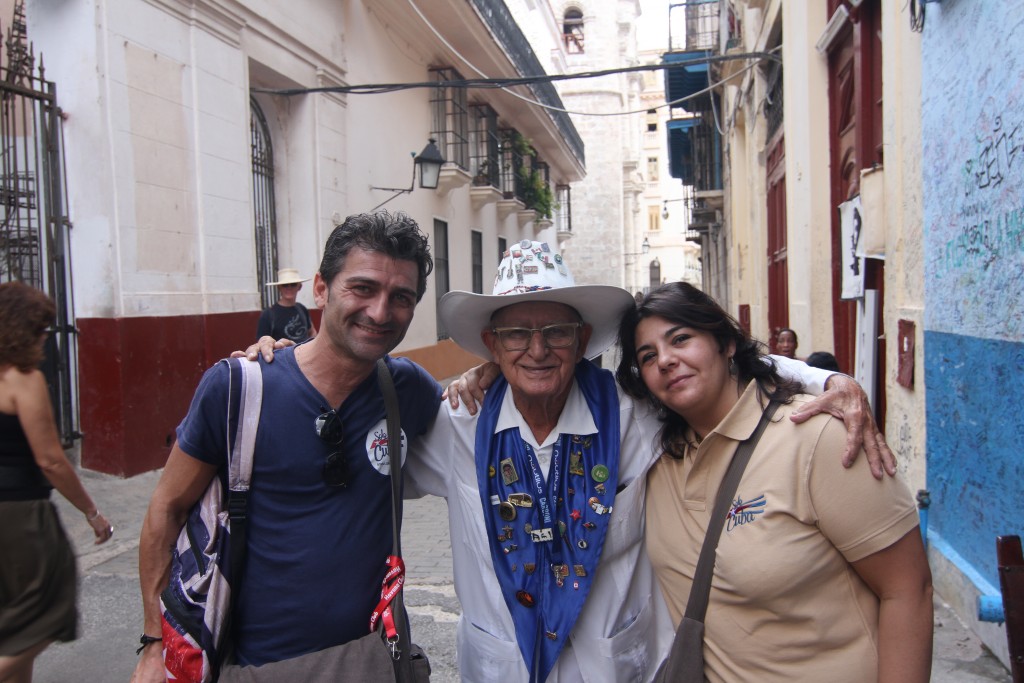 Ruggiero Napoletano e Rita Lattanzio con il poeta “on demand” de la Bodeguita del Medio