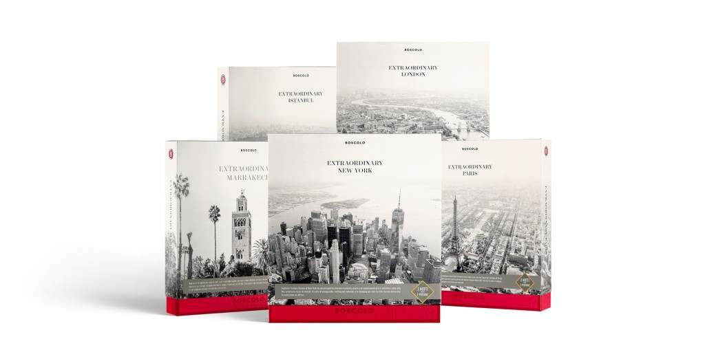 Sono sette i nuovi cofanetti della linea Boscolo Gift per il prossimo Natale, periodo clou per questo segmento di prodotto dell’operatore con sede a Padova. Le novità sono state raccontate in occasione della presentazione delle nuove strategie sales della compagnia per la linea regalo del to. Fil rouge degli ultimi arrivati, la straordinarietà delle esperienze, tanto che una serie è stata persino battezzata Extraordinary. Composta da cinque cofanetti dedicati a New York, Londra, Parigi, Istanbul e Marrakech, comprende proposte da due o tre notti a seconda della destinazione. Si tratta di un cofanetto grande, che al suo interno racchiude anche un monografico, con foto emozionali e consigli di viaggio sulle mete. Tra le esperienze incluse, il volo in elicottero nello skyline newyorkese, un musical a Londra, un imperdibile spettacolo al Lido di Parigi, una crociera esclusiva sul Bosforo e la vista dall’alto di una mongolfiera sul vivace brulichio dei mercati di Marrakech.