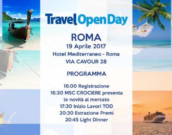 Appuntamento con le agenzie di viaggio domani, mercoledì 19 aprile a Roma, presso l’hotel Mediterraneo in via Cavour 28, per l’evento organizzato dal gruppo Travel. In primo piano traghetti, villaggi e mondo mare, presentati attraverso i prodotti di alcuni specialisti del settore: Blu Navy, Ota Viaggi, Ufficio del turismo sloveno, Gnv, Grimaldi Lines, Caronte&Tourist, Morfimare, Msc Crociere, Futura Vacanze, Fruit Viaggi, Promotion Tourism Group, Snav, Kuda Tour Operator, Tui Italia, I Viaggi dell’Airone, VisitFlanders. L’evento comincerà alle 16 con la registrazione dei partecipanti. Alle 16,30 Msc Crociere presenterà le novità al mercato. A seguire, alle 17,30, inizio dei lavori del Travel Open Day, che si protrarranno fino alle 20,30 quando ci sarà l’estrazione dei premi. In chiusura di serata, intorno alle 20,45, light dinner. Per iscriversi, è sufficiente cliccare qui.