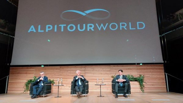 Un momento della presentazione del nuovo logo Alpitour a novembre 2022