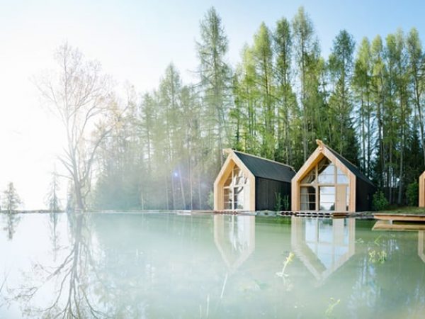Il main lodge si sviluppa in particolare su tre piani e comprende l’area wellness con la spa al piano terra, la reception e la zona lounge al piano superiore e, all’ultimo piano, il suggestivo ristorante panoramico con tetto vetrato, per cenare sotto le stelle. Due strutture vicine ospitano poi 20 junior suite e una Panorama, tutte dotate di biosauna e ampi balconi. Intorno a un laghetto naturale sorgono poi alcuni dei 20 chalet dotati di grandi vetrate, sauna e caminetto compresi nel complesso. A disposizione degli ospiti anche l’esclusiva Forest spa, un’ulteriore area benessere costruita nel bosco, con sauna finlandese, biosauna aromatica e una saletta relax.