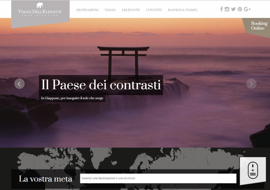 Online da oggi la nuova realease del sito di Viaggi dell’Elefante, ridisegnato completamente in modo da rendere più fruibili e maggiormente legati alla piattaforma di booking online i contenuti prodotti dall’operatore in 40 anni di attività. I viaggi sono stati organizzati in modo da potervi facilmente accedere a seconda di destinazione o tipologia di viaggio: dalla mappa è possibile trovare nell’immediato la nazione desiderata ed entrare nel mondo dei prodotti Viaggi Dell’Elefante; gli altri menu danno accesso al viaggio perfetto a seconda dei gusti e delle necessità: dai viaggi culturali e di gruppo, ai viaggi di nozze, alle proposte incentive, fino ad alcune idee “lifestyle” studiate per i clienti storici di Viaggi Dell’Elefante. «Ho voluto dare un’impronta emozionale al nuovo sito – afferma Enrico Ducrot, amministratore delegato di Viaggi Dell’Elefante – gli aspetti tecnici sono spiegati in modo molto chiaro, ma l’utente riceve subito un senso di connessione con l’itinerario che sta consultando attraverso le immagini e i plus offerti in esclusiva dall’Elefante». Una scelta stilistica che anticipa anche il catalogo in uscita tra qualche settimana. Ad oggi sul sito è presente l’intera programmazione Viaggi Dell’Elefante, con una sezione dedicata alle guide di viaggio, alle informazioni utili divise per nazione e alle procedure per ottenere i visti; il prossimo step sarà quello di integrare, tramite uno spazio dedicato alle agenzie, l’ormai consolidato booking online, che permette ai professionisti del settore di creare un preventivo completo in pochi minuti.