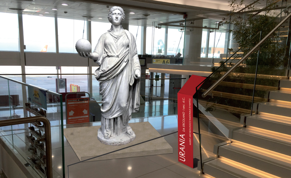 E’ stato inaugurato nei giorni scorsi a Napoli l’“Aeroporto Archeologico”, un itinerario archeologico unico al mondo proprio per il suo posizionamento, all’interno di uno scalo aeroportuale. L’originale progetto nasce da un’idea di Gesac – la società di gestione dello scalo di Napoli – e della Soprintendenza Archeologica della Campania, è stato realizzato grazie ad un Protocollo d’Intesa siglato nel marzo del 2016 tra il gestore aeroportuale ed il Mibact. Lo scopo è quello di valorizzare e promuovere il prezioso patrimonio archeologico e culturale campano offrendo ai passeggeri, visitatori e soprattutto i tanti turisti italiani e stranieri in transito in aeroporto, un’esperienza “unica al mondo”. Il leit motiv dell’itinerario archeologico realizzato presso lo scalo di Napoli è quello del Viaggio – Il Viaggio Haec est Italia Diis Sacra (Plinio Il Vecchio, da Naturalis Historia, Libro III, cap.46) associato a quello del Volo in quanto le opere prescelte (statue originali e alcune copie certificate) e posizionate all’interno delle aree aeroportuali sono delle “divinità alate”. Inizia dunque in aeroporto il Viaggio, in volo sull’Italia sacra agli Dei descritta da Plinio il Vecchio, in cui il pubblico dei viaggiatori italiani e stranieri si ritrova immerso, a sorpresa, in una dimensione insolita, in un percorso suggestivo e ricco di storia in cui hanno il privilegio di essere accompagnati da alcune divinità che dominano il cielo come Nike, Hermes, Trittolemo e Urania (le opere principali dell’itinerario)* provenienti dal Museo Archeologico Nazionale di Napoli e dal Museo Archeologico di Capua. L’allestimento aeroportuale che segue il fil rouge del Viaggio e attraverso le opere di divinità alate, quello del Volo, si sviluppa nelle aree di transito (partenze e arrivi) seguendo lo stesso percorso che fa il passeggero per imbarcarsi e partire e al suo arrivo a Napoli. Lo stesso verrà poi successivamente implementato con la realizzazione di una “sala multimediale” e amplificato attraverso innovative tecnologie digitali e di comunicazione multimediale, in grado di stupire, attrarre ed intrattenere il passeggero in transito a Napoli.