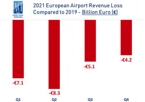 In bilico anche la resilienza finanziaria degli aeroporti, che secondo Aci Europe sta “vacillando” a causa del perdurare della crisi. Gli aeroporti europei hanno perso 30 miliardi di euro nel 2020 rispetto al 2019, in altre parole il 60% circa dei ricavi annuali abituali.