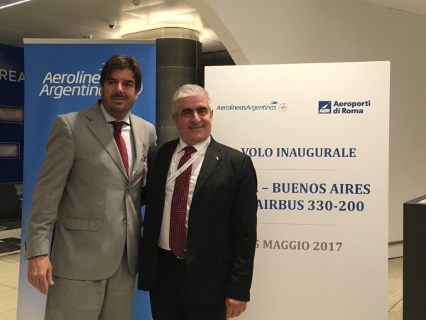 Aerolineas Argentinas celebra il suo nuovo A330-200 a Roma. Con un battesimo ufficiale all’aeroporto di Fiumicino, la compagnia aerea ha festeggiato l’arrivo in flotta del nuovo aeromobile di ultima generazione e annunciato l’aumento delle frequenze che porterà a luglio ad un volo giornaliero Roma-Buenos Aires. La rotta sarà operata di sera, in entrambe le direzioni, con l’A330-200 configurato in due classi di servizio, con 22 posti in business class e 243 in economy. «Sono molto soddisfatto, dell’arrivo del nuovo aereo ma soprattutto dell’arrivo alla frequenza giornaliera – ha detto Claudio Neri, direttore per l’Italia di Aerolineas Argentinas -. Il nuovo aereo è stato creato apposta con delle caratteristiche particolari, come il potenziamento effettuato per pemettergli di operare una rotta così lunga. La business è particolarmente accogliente, con il sistema di illuminazione modulata e i colori che cambiano seguendo le varie fasi del volo. Il sedile di business è reclinabile 170 gradi, quasi come un letto, e il sistema di intrattenimento “Bravo” è nuovo e comprende 45 film in varie lingue tra cui l’italiano e oltre 400 episodi delle principali serie tv. La stagione si prospetta buona, per cui ci aspettiamo di consolidare il load factor sostenuto del 2016 nonostante l’aumento delle frequenze». A festeggiare il nuovo aereo era presente anche Marcelo Gilardoni, ministro dell’Ambasciata Argentina, che ha sottolineato come le maggiori frequenze continueranno a stimolare il turismo tra i due Paesi. «Il governo sta puntando sullo sviluppo del sistema del trasporto aereo in Argentina, soprattutto per i voli interni. L’obiettivo è incrementare le possibilità di muoversi per il Paese senza dover obbligatoriamente passare per Buenos Aires».