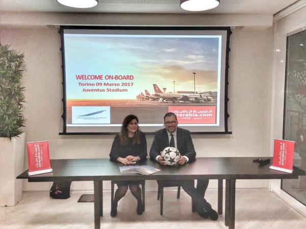 Anna Milanese, direttore generale dell’aeroporto di Cuneo e Marco D’Onofrio, sales manager Italy di Air Arabia Maroc