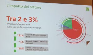 Le emissioni del trasporto aereo incidono solo per il 2-3% sull’ambiente. Non è il settore più inquinante. Di questa percentuale l’81% è diretto, derivante dal carburante e rientra nell’obiettivo scope 1, l’1% è indiretto derivante dagli uffici in scope 2, e un 18% arriva da altro indiretto, flotta, manutenzione, aeroporti, fornitori in scope 3.