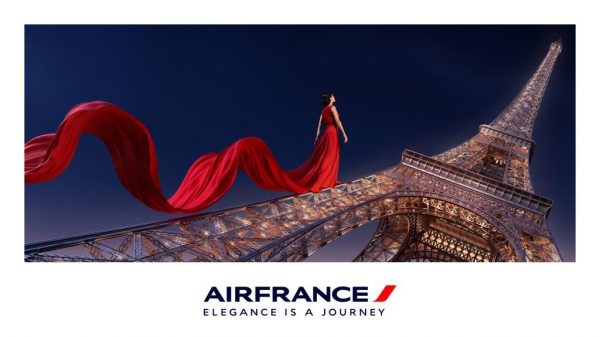 Ispirandosi agli elementi iconici del video, quali la Torre Eiffel, simbolo universale della Francia, e l’abito rosso – la protagonista è nuovamente mostrata mentre sale audacemente sulla torre, con il lungo strascico del suo vestito che ondeggia al vento. Questa nuova immagine incarna pienamente la firma pubblicitaria della compagnia: “Elegance is a journey. Air France.”